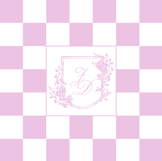 Floral Shield Monogram on Pink and White Checkerboard
