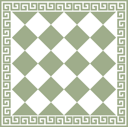 Sage and White Diamond Checkerboard with Greek Border