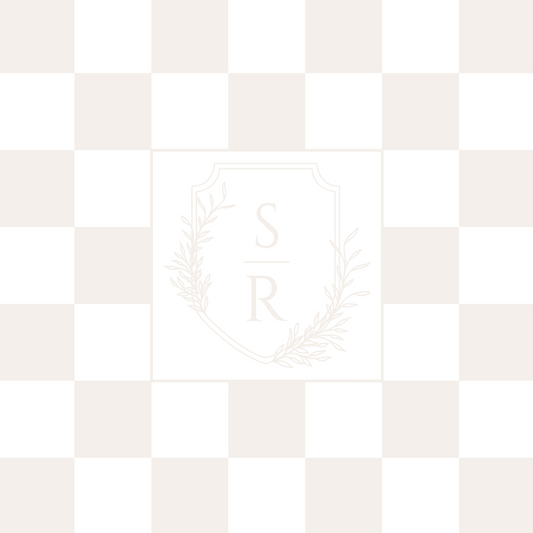 Floral Shield Monogram on Tan and White Checkerboard