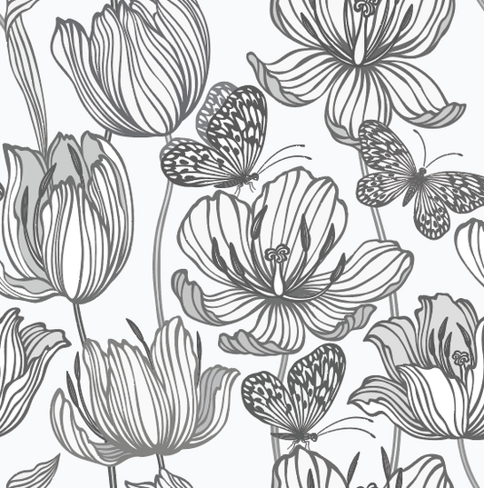 Gray Flowers and Butterflies